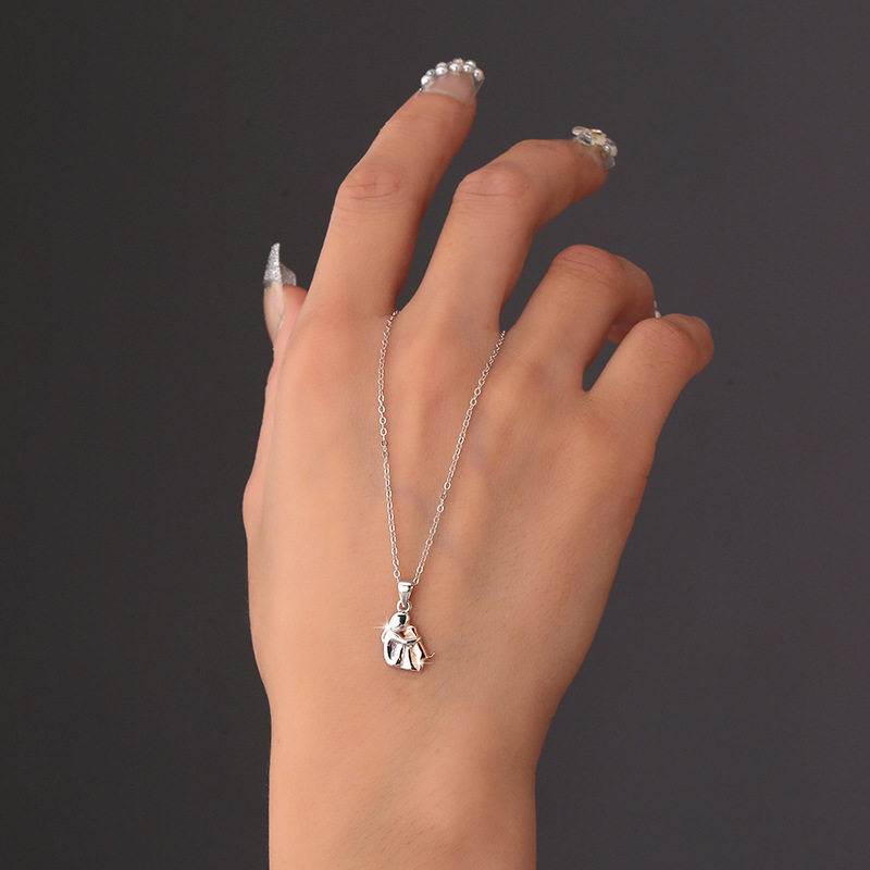S925 sterling silver little girl and dog embrace necklace for women